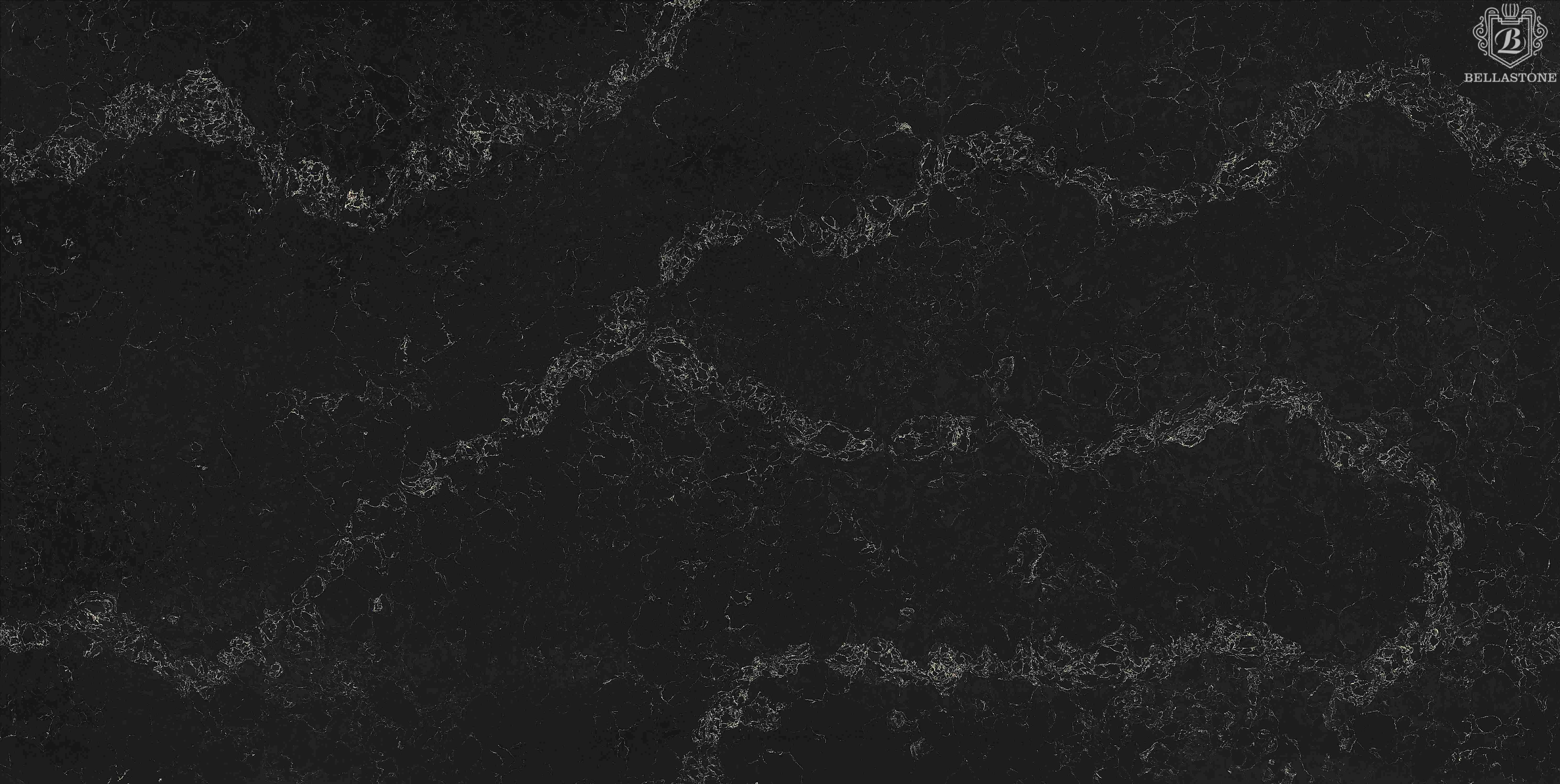 Bellastone BL8372 "Golden Black Stream" artificial quartz stone carrara collection